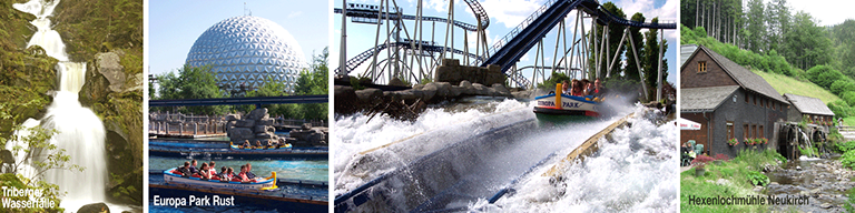 Ihre Ausflüge in den Schwarzwald lassen sich durch die günstige Lage von Hüfingen auch an den Bodensee, in die Schweiz, ins Elsaß oder nach Österreich erweitern. Genießen Sie Städtetrips in die Konzilstadt Konstanz, Meersburg und Friedrichshafen. Besuchen SIe die älteste Stadt Baden-Württembergs — Rottweil mit dem höchsten Turm Deutschlands. Bestaunen Sie die höchsten Wasserfälle Deutschlands in Triberg und machen Sie einen Halt in den Vogtsbauernhöfen.