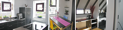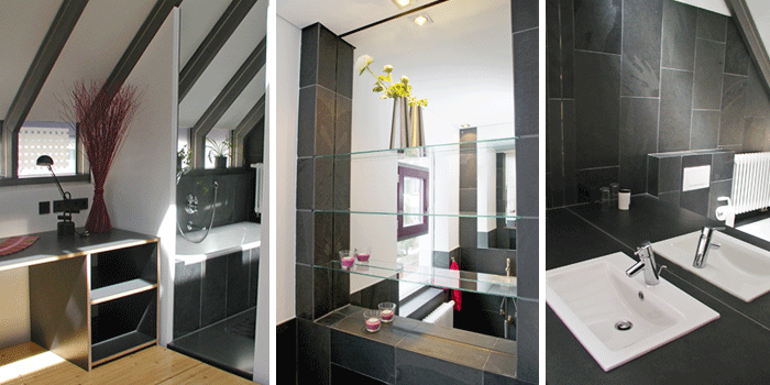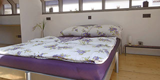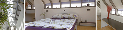 Im DG finden Sie ein großzügiges Schlafatelier (französisches Bett mit 140 cm Breite), einen begehbaren Kleiderschrank und ein schönes Badewannenbad mit WC.